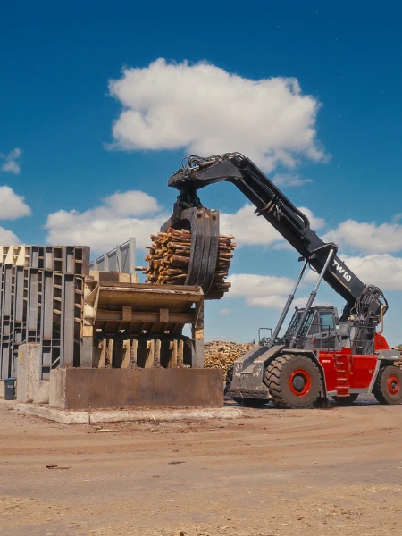 Mit innovativen Produktentwicklungen tragen wir dazu bei, die Prozesse unserer Kunden noch effizienter und wirtschaftlicher zu gestalten. Ein Beispiel hierfür ist der von AMF-Bruns entwickelte Nassspanbunker. Im Vergleich zu herkömmlichen Kettenbunkern mit Rückkämmsystem bietet er gleich mehrere Vorteile: So ermöglicht das patentierte Verfahrbandsystem bei Bunkern über 400 m³ Volumen eine Beschickung mit zwei Zerspanern gleichzeitig, wodurch sich die Prozesssicherheit spürbar erhöht. Auch Bunkervolumina über 500 m³ können problemlos verarbeitet werden. Für optimale Abläufe in OSB-Werken sorgen außerdem die geringen Wartungs- und Stillstandzeiten sowie die äußerst materialschonende Transportweise. Viele Pluspunkte also, die sich in der Praxis auszahlen.